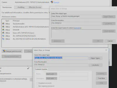 Alright, seems like I need to first take ownership of the file before I delete it. Right click on the WAV file and click ‘Properties’. From here, access the ‘Security’ tab and then ‘Advanced’. This will bring up a Window that tells us that the owner of the file currently is “TrustedInstaller”. We need to modify this so click ‘Change’. Type your username in the ‘object name’ area and hit ‘Check Names’. It should populate the correct username. If it doesn’t, go to advanced and hit ‘Find Now’ and select the correct name.