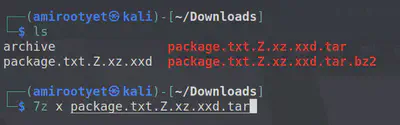 Since we now have an archive, we use 7z to decompress and repeatedly compressed file inside.