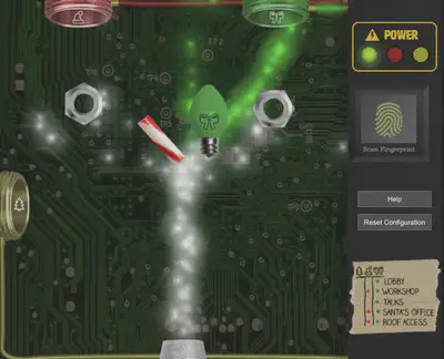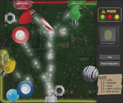 This one was less on the technical side and more on the creative side of things. After arranging the collected objects in a specific manner, the Santavator can be “hacked” to work. The image below shows my configuration.