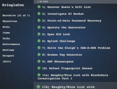 Spoiler alert! This is a complete step-by-step walkthrough of the 2020 Kringlecon CTF. I strongly recommend that you give the challenges your best before finding a solution here. If you have already completed a challenge, you may find an alternative approach here since many objectives can be solved in multiple ways. Artifacts and scripts pertaining to my solutions to some of these challenges may be found on this Github repo.