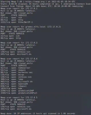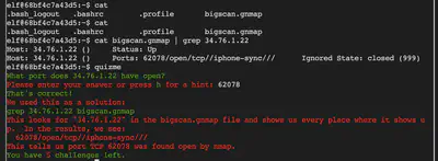 The next set of challenges touch upon both nmap as a network scanner and grep for sifting through contents of files. Here are all of the queries for quickly discovering relevant content within the .gnmap file.