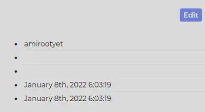 We notice that the server now displays amirootyet in the correct field. Our SQLi succeeded! Let’s craft a query now so the server shows us what tables are available: