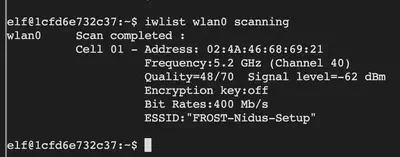 We now notice that the access point with ESSID FROST-Nidus-Setup is available. Next, let’s connect to this access point.