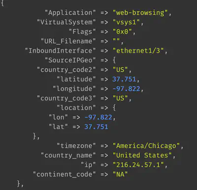 However, in our case, we want the @timestamp to reflect the ReceiveTime observed in the Palo Alto firewall log message.