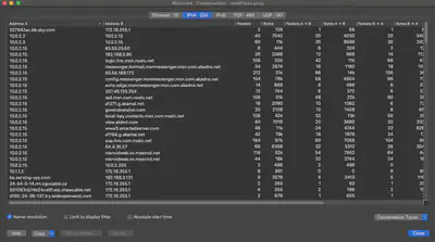 Next, Wireshark provides the ability to quickly identify all endpoints involved in conversations: