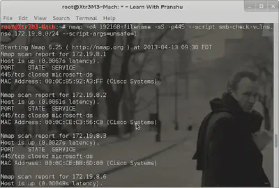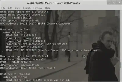 Be careful using the ‘unsafe’ option as it is likely to crash the victim machine. After completion of the scan, I found a system vulnerable. Note that the script also tests for the presence of the Conficker worm infection.